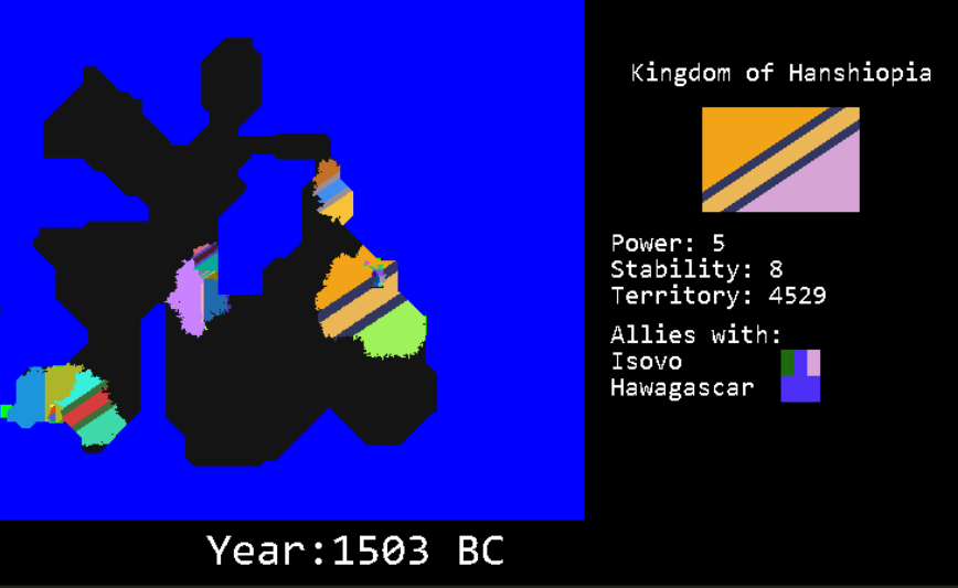 This is a war/civilization simulation game I also wrote in C#. This is, I believe, still my largest project by lines of code.